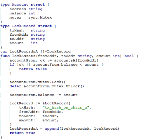 下列代码主要实现资产锁定功能,还包括资产确认,资产回滚的逻辑,提供了跨链桥的基础资金的安全保障,如果一旦发生了如被黑客攻击或者某些第三方原因所造成的跨链失败,则能够将初始发起账号的资金回滚,以此实现了资金的回溯以此来保障使用者的安全保护,且通过NPC自有的代码优化将此类安全保障机制给予升级和强化。